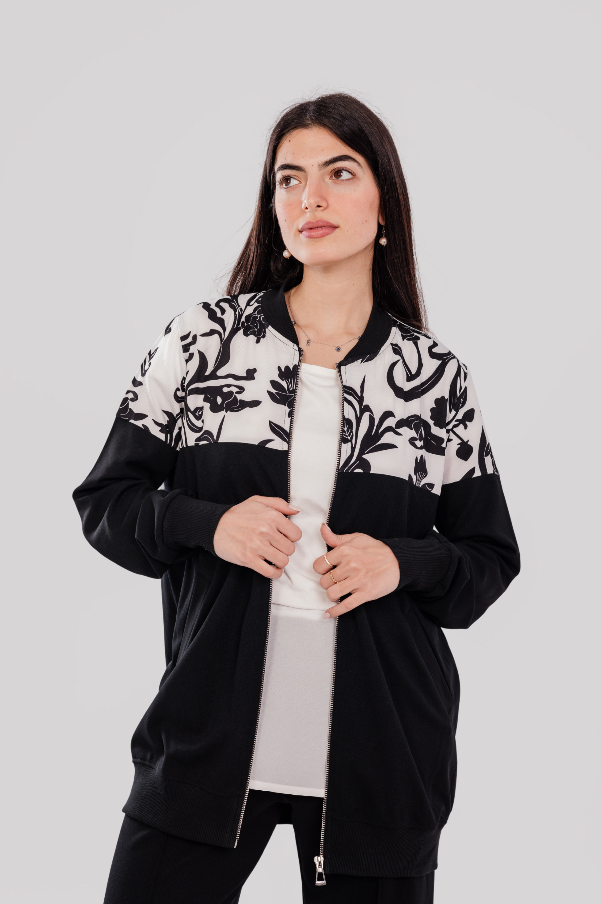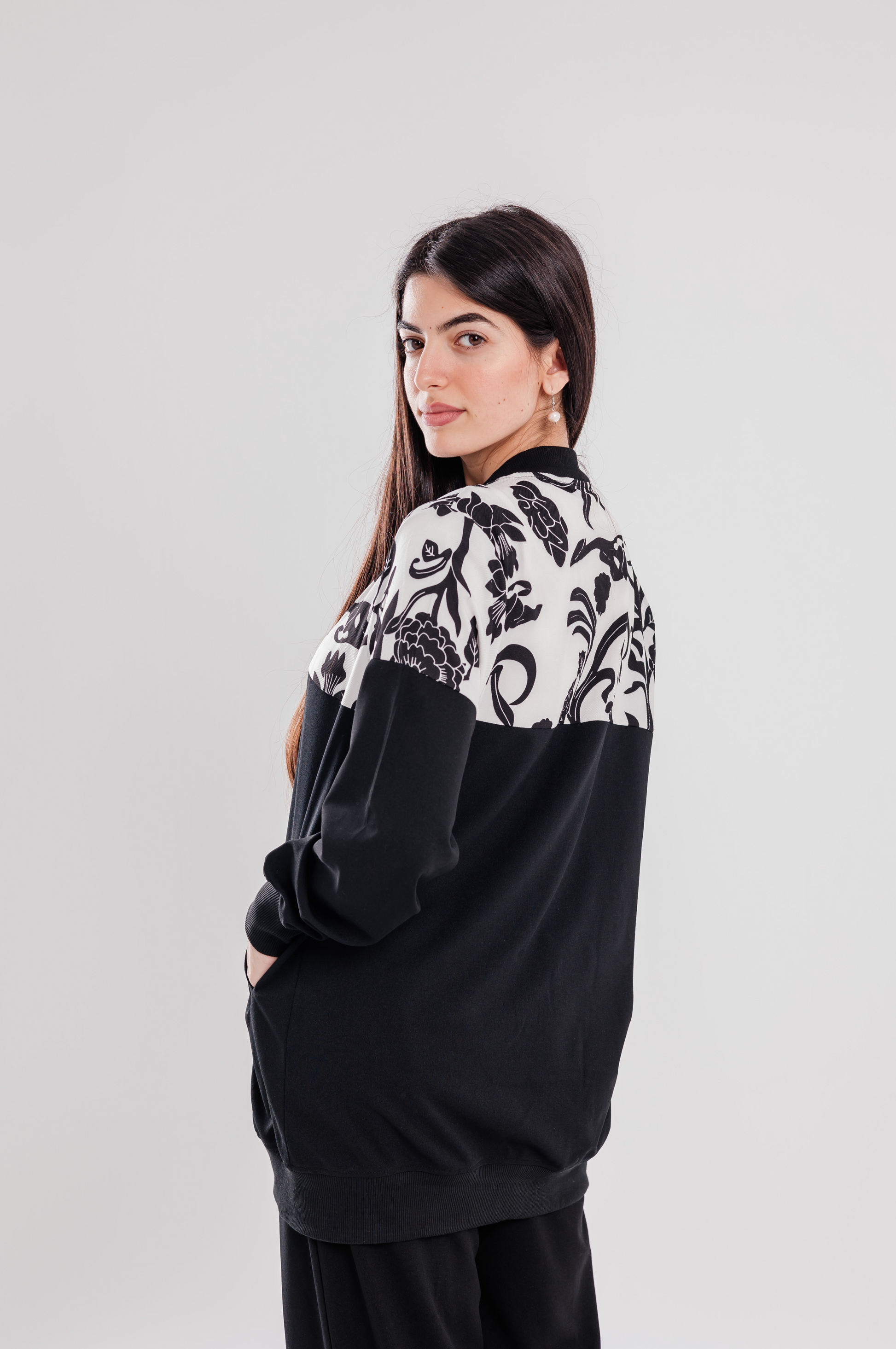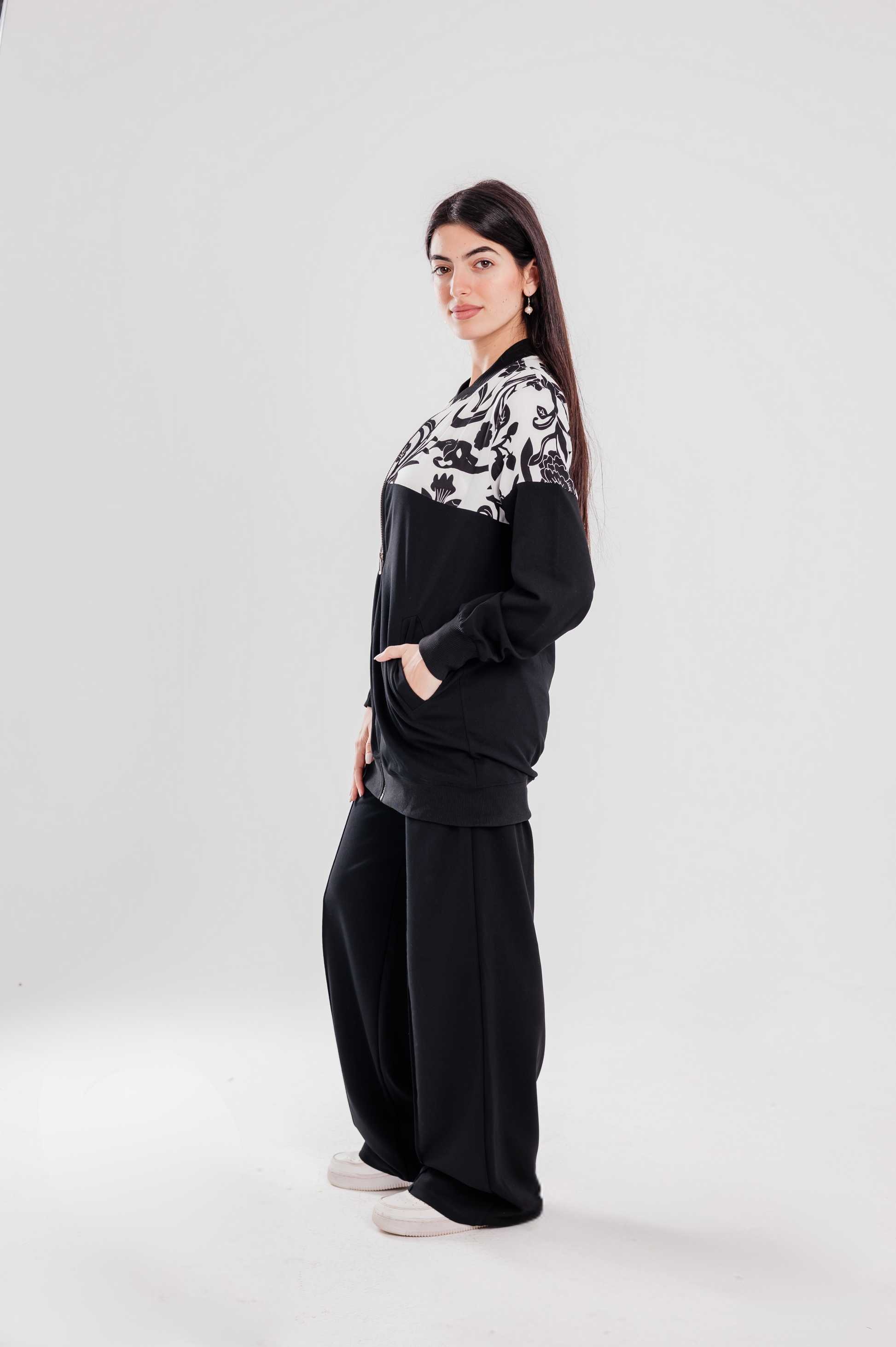 The Noir Garden Set blends structured softness with artistic detail, creating a striking black canvas that feels both refined and expressive. The scuba crepe fabric offers a polished finish while maintaining comfort — ideal for daytime sophistication or quiet evening moments.